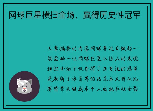 这篇文章将带领读者深入分析一场激烈的德比战,它不仅是一场简单的足球比赛,更是两支宿敌球队之间的激烈对决。在这场比赛中,球迷的热情达到了顶点,所有人都期待着巅峰对决的上演。文章将从四个方面进行详细阐述,分别是:德比战的历史背景与传统意义、球迷文化与热情的表现、球队的竞技状态与战术较量、比赛的社会与文化影响力。通过这些角度,文章将展现出一场德比战如何成为足球世界中的一场盛宴,激发出无数人心中的热情与期待。